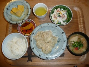 しゅうまい、海老のサラダ、豆乳入り玉子焼き、豚汁 玉子焼きは豆乳のせいか幾分やわらかく感じられました。しゅうまいは私の好きなミンチの料理、美味しく頂きました。サラダは玉葱も入っていて海老もプリプリして凄く新鮮で美味しかったです。