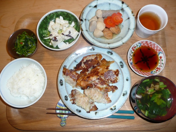 焼き餃子、小芋とこんにゃくと人参の煮物、山芋とブロッコリーの梅マヨ和え、ほうれん草ときのこのお吸い物 みぶな 久しぶりの焼き餃子が凄く美味しかったです。パリパリとして香ばしくて。梅マヨ和えも山芋がサクサクしていい味だしていました。