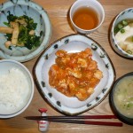 豆腐入りエビチリ、おぼろ豆腐、あげと小松菜の炒り煮、玉葱とジャガイモととろろのお味噌汁 エビチリに豆腐が入ると味がまろやかになりとても美味しかったです。お味噌汁もとろみがついていてとても温まりました。小松菜も美味しかったです。