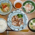 鶏肉の塩麹焼き、帆立のナマス、お豆腐揚げと白菜と青梗菜の煮物、豆腐と揚げのお味噌汁 塩麹焼きが味がよくしみ込んでいてとても美味しかったです。お豆腐揚げもやわらかく煮てありました。野菜とよく合います。