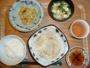 水餃子、はるさめのサラダ、豆腐としいたけとほうれん草と玉子のお澄まし 水餃子はお野菜もたっぷり入っていて歯触りがよくシャキシャキしてとても美味しかったです。おかわりしてしまいました。ハルサメサラダも口当たりが良かったです。