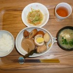 おでん(玉子、大根、じゃがいも、ごぼてん、ちくわ、手羽先、コンブ、がんも)、ナマス、豆腐と玉葱のお味噌汁 大根も手羽先もやわらかくて味がよくしみこんでいて凄く美味しく頂きました。私はおでんの玉子も好きです。お昼から沢山頂きました。