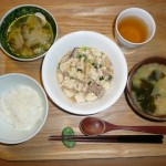 マーボー豆腐、白菜の煮物、ワカメとキャベツと大根のお味噌汁 この頃体重が増えているので軽めの昼食でよかったです。お野菜ばかりが嬉しいです。