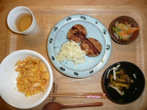 コロッケキャベツ添え、大根と人参ときゅうりのナマス、キムチガーリックライス、きのこのお澄まし ラーメン入りスープ 杏仁豆腐 キムチガーリックライスはお初でナカナカ食欲の湧く美味しいライスでした。ラーメンはトマトスープの出しで作られていました。とんこつ風ラーメンでした。コロッケはお昼から二個も頂いてしまいました。今日は雨で運動もしないのにまた食べ過ぎてしまいました。どうにかしなければ。夕食はご飯を抜きます。