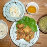 鶏肉の唐揚げカレー風味サラダ菜添え、はるさめサラダ、白菜のお味噌汁 大根飯 サラダには人参ときゅうりと玉葱と玉子は入っていてあっさりとして美味しいサラダでした。カレー風味は食慾をそそり沢山頂きました。大根飯には揚げと昆布が入っていて通称おしん飯というらしいです。おしんは見てないので良くわからないのですが。今日から11月です。また寒くなるのですね。