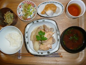 鶏手羽先と大根の煮物、里芋のゆず味噌がけ、オクラとちくわとナスの胡麻和え、しじみ汁、白菜の漬物 手羽先はいつものようみコラーゲンたっぷりでぷりぷりでした。大根もそれはそれはやわらかく煮られていました。しじみ汁はしじみの出汁が出て凄く美味しいです。