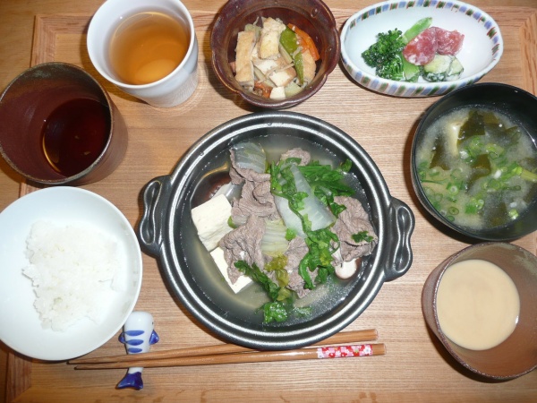 しゃぶしゃぶ鍋、トマトときゅうりとブロッコリーのサラダ、厚揚げ味噌炒め、揚げとワカメのお味噌汁 しゃぶしゃぶは胡麻だれとポン酢で頂きました。お肉が少々すかすかというかまったり感が無くて少し残念でした。やはりたれは胡麻だれですね。脂ののったお肉が恋しいですね。グラム1000円位しそうですね。生協のはもも肉でグラム600円ですね。それで望むのは無理というものでした。
