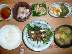 いわしの梅煮紫蘇添え、ブロッコリーと玉子の煮物、小芋といかの煮物、じゃがいもと玉葱と揚げのお味噌汁、お漬物 いわしは骨がありましたが梅と昆布で煮られていて美味しかったです。白米がすすみますね。小芋といかもなかなk美味でした。今日もしっかりお野菜頂きました。病み上がりの休日は家でのんびり過ごしました。