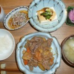 豚肉とキャベツの甘味噌炒め、秋刀魚の昆布じめ、冬瓜と揚げの煮物、海老入り茶碗蒸し、白菜の漬物 私の好きな炒めもので嬉しかったです。豚肉もキャベツもやわらかく炒められていて美味しかったです。秋刀魚の昆布じめはあっさりして美味でした。冬瓜もするりとのどに入って食べやすかったです。茶碗蒸しの海老が良かったです。