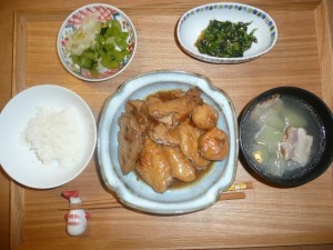 小芋と蓮根と手羽先の煮込み、ほうれん草の胡麻和え、冬瓜とベーコンのスープ、お漬物二種 私は蓮根が好きなので今日は手羽先との煮込みとても美味しかったです。スープもベーコンの味がよく出ていてとても美味でした。台風来るのかな。まだまだ静かですね。