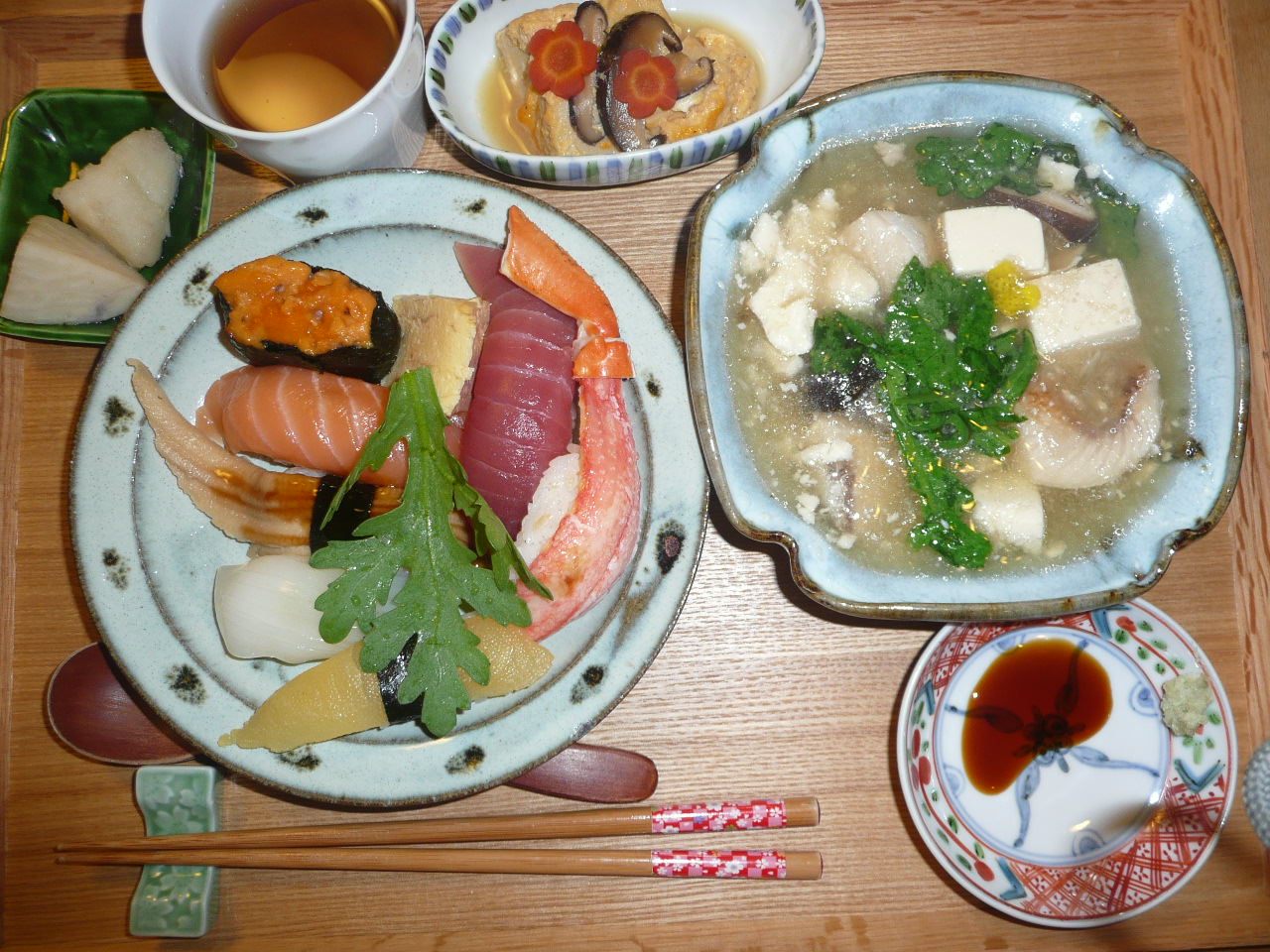 握り寿司、みぞれ鍋、高野豆腐の玉子とじ、里芋の煮物 握り寿司はうに、穴子、サーモン、イカ、数の子、海老、まぐろでした。超美味しかったです。みぞれ鍋はぶりとしいたけと豆腐が入っていました。ぶりのいきが良くてそれはそれは美味しかったです。今晩は職員さんの忘年会です。そして私は全日本フィギュア羽生君を応援します。