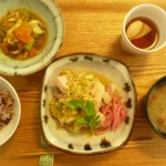 蒸し鶏の玉葱ソースがけ赤かぶ添え、温野菜のサラダ、ナメコと豆腐とわかめのお味噌汁、お赤飯 玉葱ソースはねぎと生姜と沢山の玉葱で出来ていてそれはそれは美味しいです。温野菜はなんきんとブラウンマッシュルームと青梗菜と人参でまるでラタトウユのような感じでした。夏が近づくと美味しいメニューですね。今日はお赤飯でした。