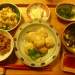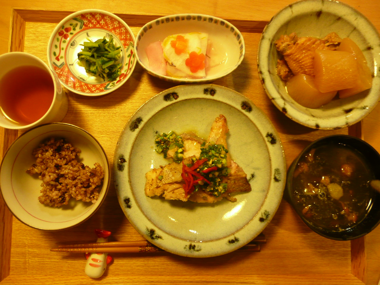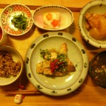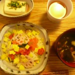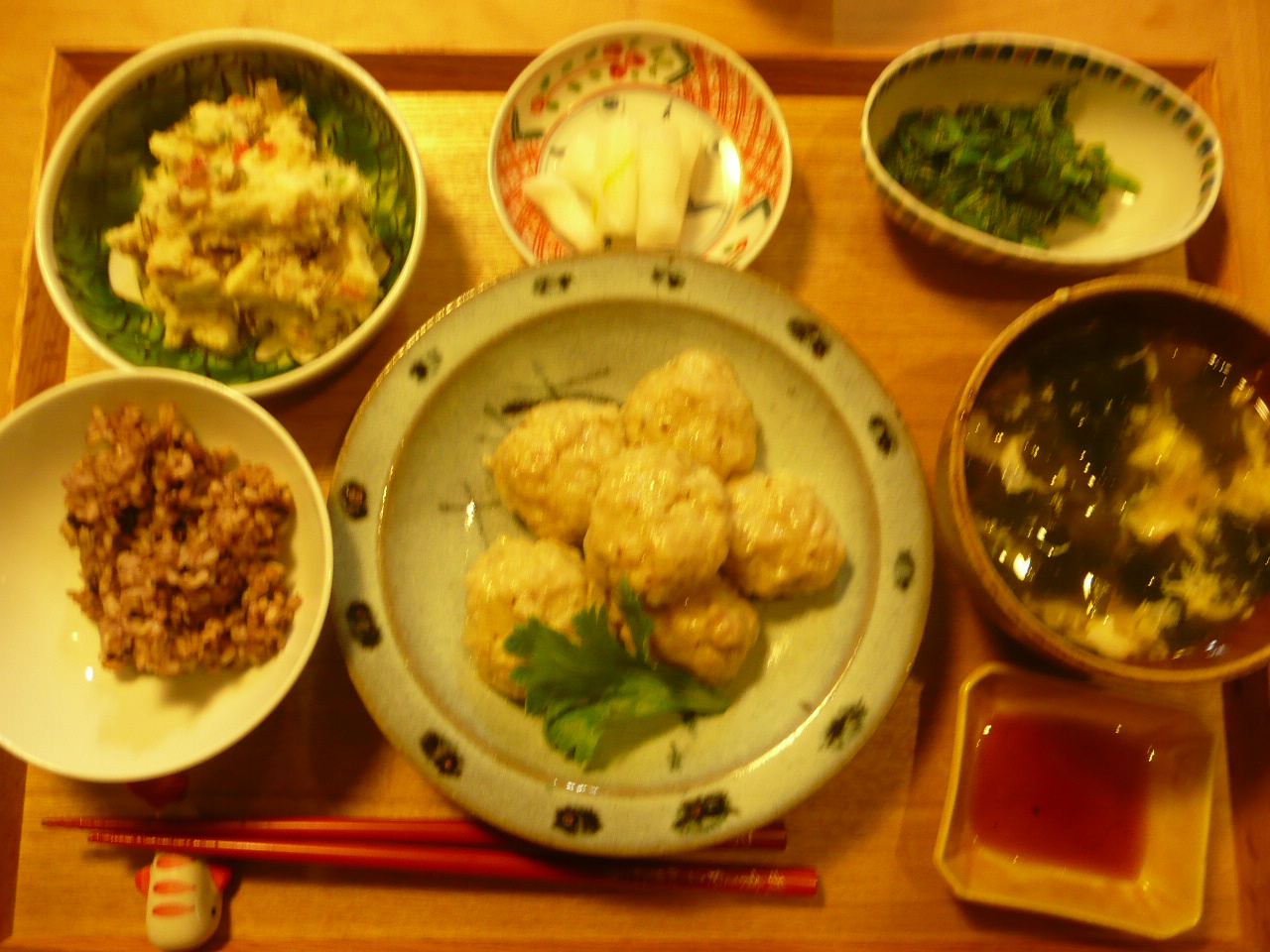皮なししゅうまい、卯の花、ほうれん草の和え物、わかめと玉子のお澄まし、ゆづ大根の漬け物 しゅうまいには白玉粉とおからが入っていてソフトな味でした。卯の花は体によさそうですね。ゆづ大根美味しいです。ゆづ君だからね。