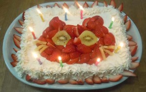 お誕生日会 2012年8月7日2012年8月17日 - imanishi お誕生日会にケーキを作っています。 今月は猫好きの利用者様の為に、苺とゴールデンキウィで猫の顔にしてみました。 次回は下地のスポンジケーキの代わりにマンゴープリンにしてみようかと考えています。