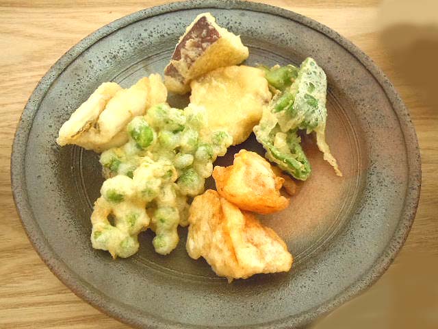 揚げたて天ぷら 2012年8月14日2012年8月17日 - imanishi 季節の野菜やちょっと変わった材料(よもぎ、あしたば、蕨、筍など)をかき揚げにして、揚げたてを召し上げって頂こうと思い、天ぷらバイキングを実施しています。 ときに、屋上菜園で収穫したえんどう豆のかき揚げやオオバの天ぷら・・・ 天婦羅屋さんには及びませんが・・・ 好評の昼食です。