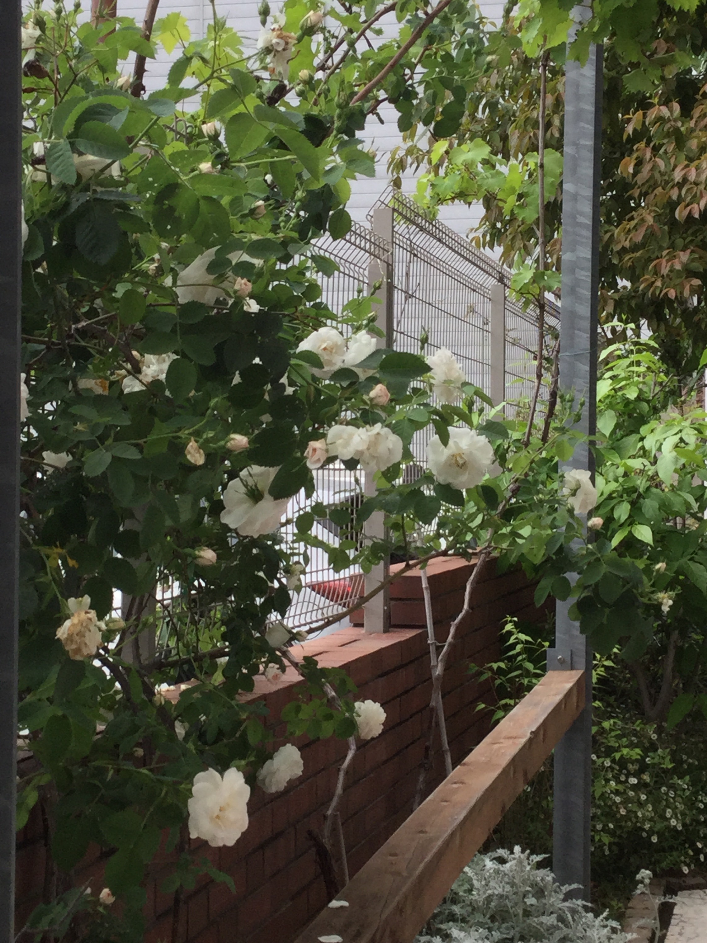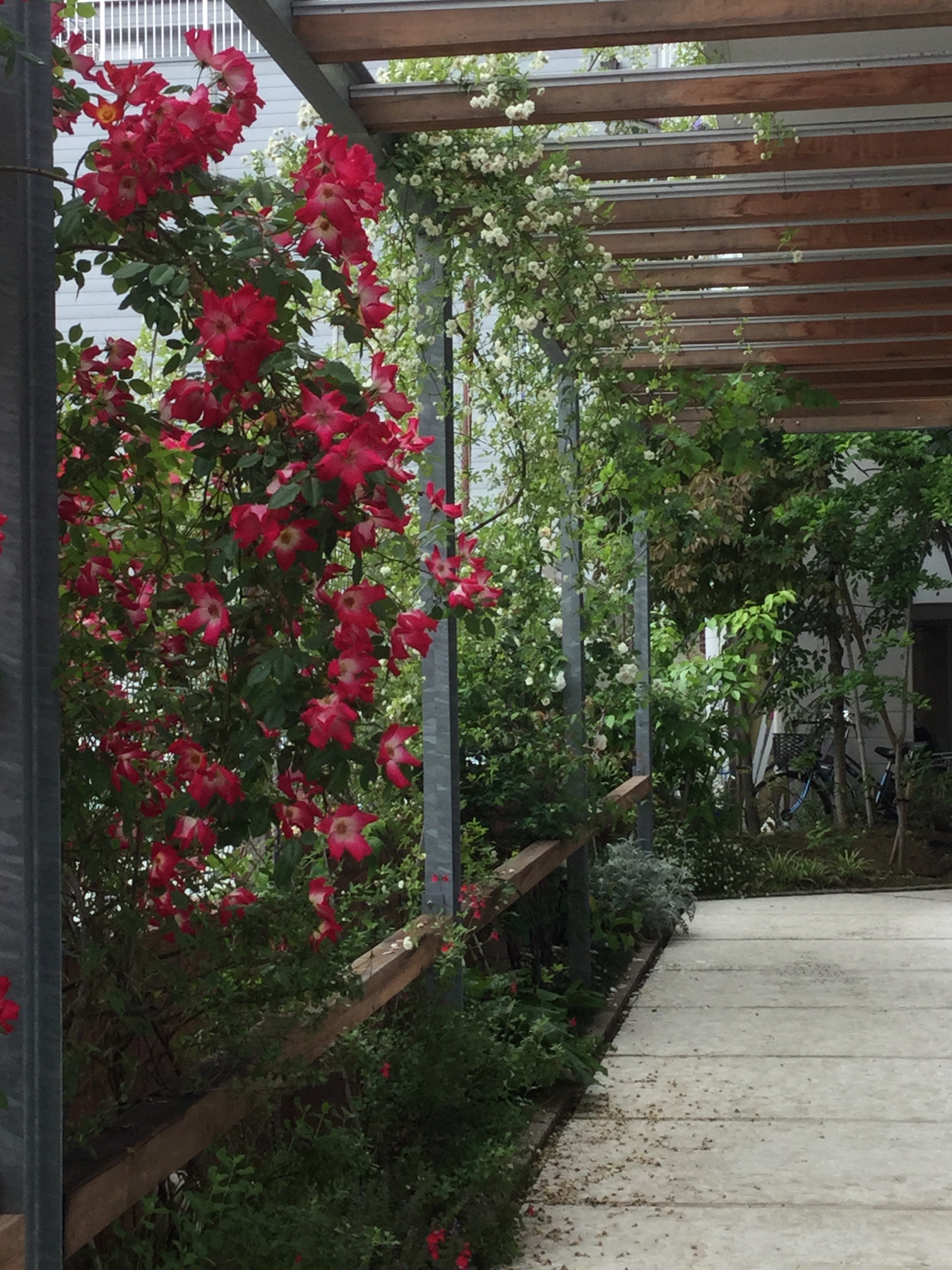 門から続く道にバラが咲き乱れ、ああもう五月ですね~