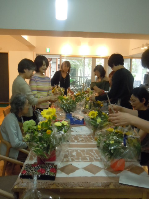 今日この頃 2011年7月15日 - moritoshi 7月14日、ご利用者様から今日は何日と聞かれ、そうか今日はパリ祭かと気付きました。私にとってパリ祭なんてどうでもよいことですが、まあ夏本番の印象です。デイサービスで皆様が作られた、フラワーアレンジです。 また、ご見学のお方が、さっそくその日から2階のお部屋にお入りになり、翌日の朝食から朝食初体験をいたしました。