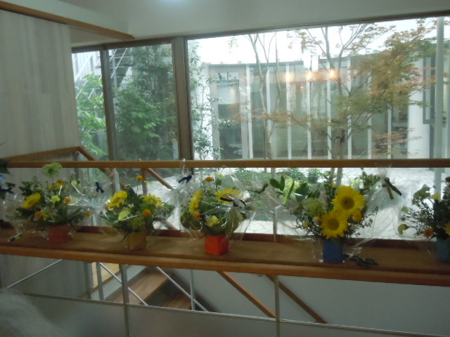 フラワーアレンジメント 2011年6月22日2011年6月22日 - moritoshi Leave a comment 6月18日、父の日の前日アレンジメントの講習を行いました。 ラッピングもしてプレゼント仕様に完成させました。 ひまわりや、手まり草、緑のヒペリカム等ビタミンカラーで元気の出る作品に仕上がりました。 次回は7月16日(土)なのでご希望者はTELかFAXでお申し込みください。 地平線を意味するホリゾンタルスタイルのアレンジを考えています。よく新郎新婦の高砂席を飾る、アレです。 お楽しみに