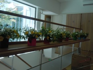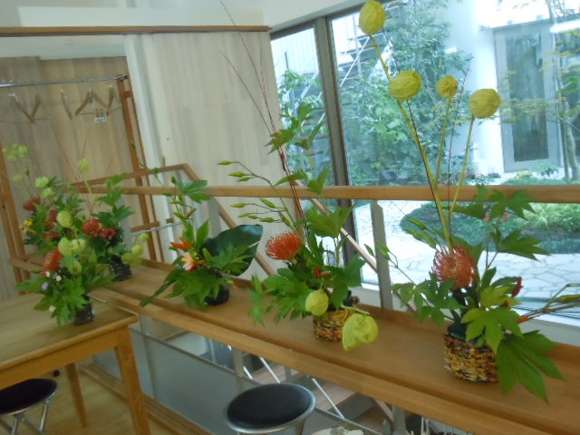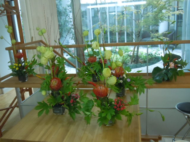 8月フラワーアレンジメント 2011年8月21日2011年8月21日 - moritoshi 8月20日(土)、フラワーアレンジメントの講座を開催しました。今回はエルシェイプというむずかしい形にチャレンジしましたが、皆様大変お上手で、安田共々、講師力に変に自身を持ってしまったくらいです。風船とうわた、ピンクッション、唐辛子等季節のお花で夏らしく、かつ格調たかいアレンジができました。 次回は、9月17日にお月見をイメージしたアレンジを考えています。どうぞ、多数ご参加くださいませ。