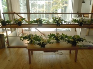 8月フラワーアレンジメント 2011年7月22日2011年7月22日 - moritoshi 暑い季節になりました。 もみじの落ち葉を掃いたころや、北風に木々が揺れていたころ、チュ-リップの咲いた春。 昨秋より始まったクーラコモンズの日々も、今夏で四季を一巡します。 8月は夏に強い葉物で、Lシェイプのアレンジを考えています。どうぞ、暑い中ですが、ご参加ください。